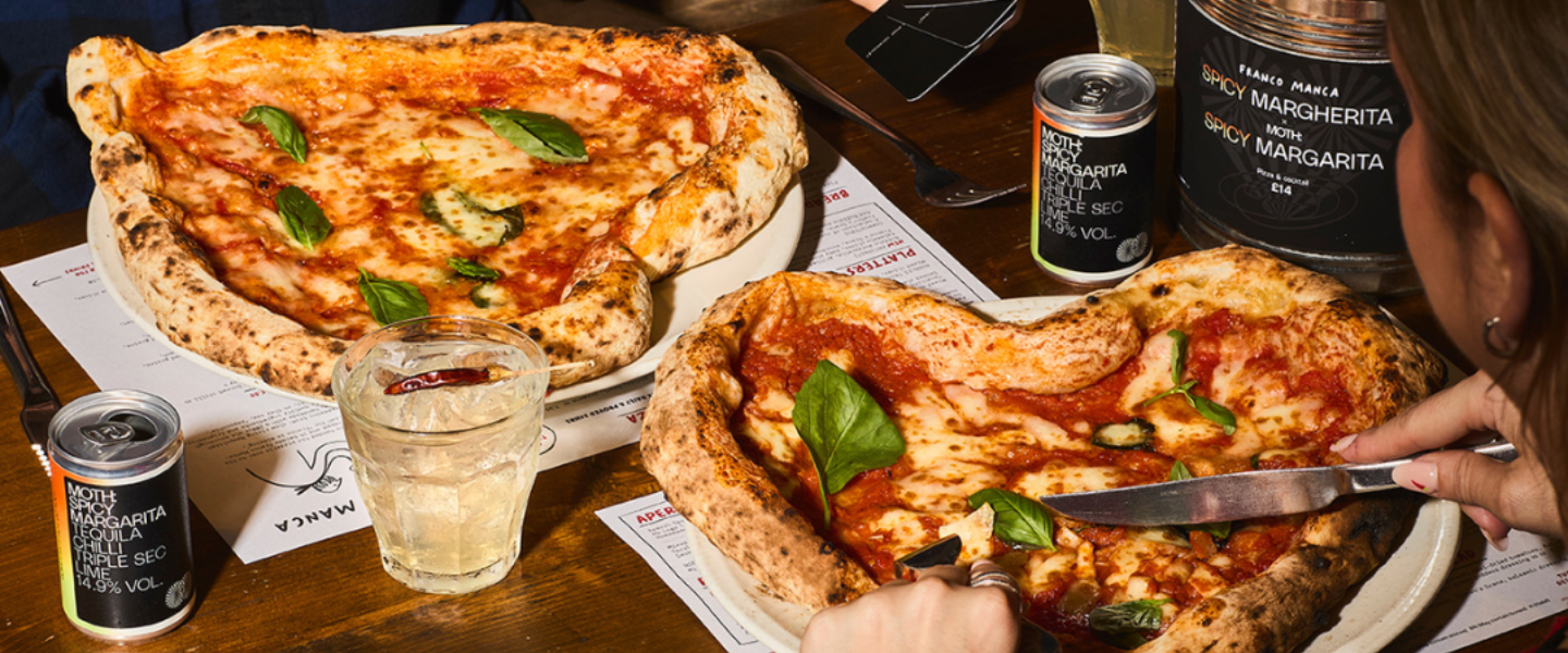 Available from 4th–28th February, the collaboration combines Franco Manca’s signature sourdough pizza expertise with MOTH’s ready-to-drink cocktails. The result is a Spicy Margherita pizza perfectly paired with a bold Spicy Margarita, designed to be enjoyed together or on their own - or combined as a bundle for £14.
